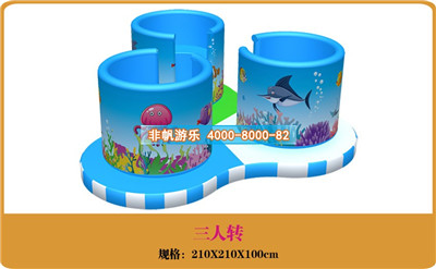 兒童電動淘氣堡設備【三人轉】是由廣州市非帆游樂設備廠家直供,國內大型專業兒童游樂設備研發生產廠家之一,集游樂設備生產、設計、銷售及維修為一體,主營室內兒童樂園淘氣堡,百萬球池淘氣堡樂園,創意蹦床,兒童駕校,情景體驗區,水上樂園設備等多種款色新型兒童游樂設備,室內兒童樂園設備價格便宜靠譜保證!歡迎客戶前來本廠家參觀指導洽談合作!